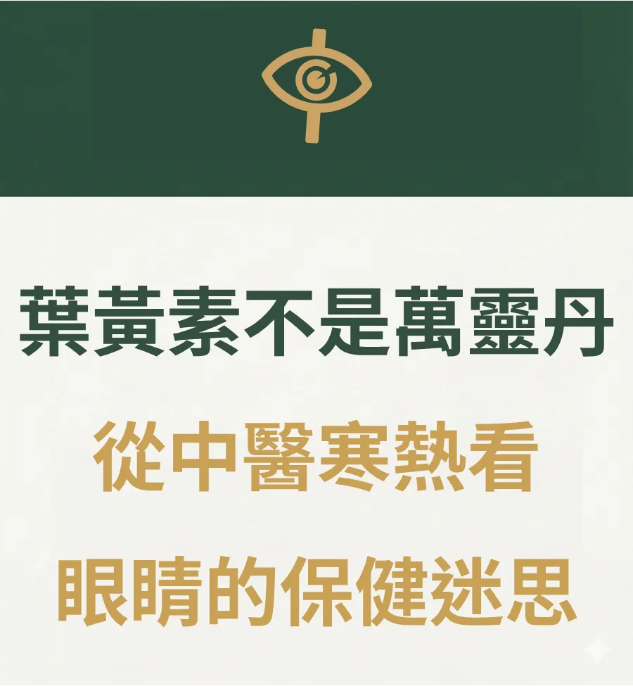 每天吞高劑量葉黃素,眼睛還是乾澀疲勞?現代醫學指出葉黃素對近視老花無實質幫助。中醫眼科醫師帶你了解葉黃素的苦寒屬性,吃錯反而凍傷腸胃陽氣。真正的護眼,請從找回身心平衡開始。