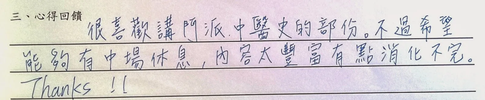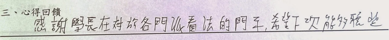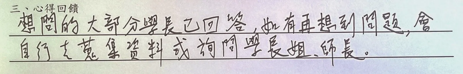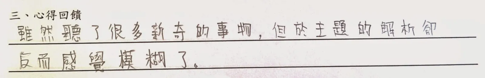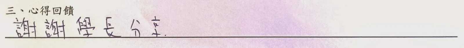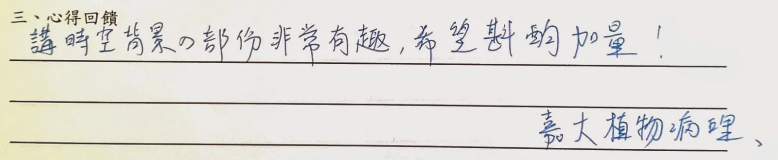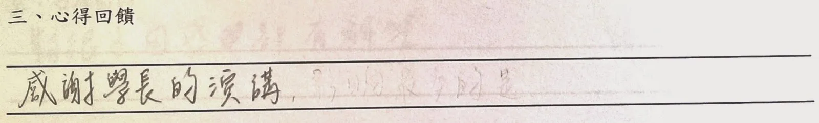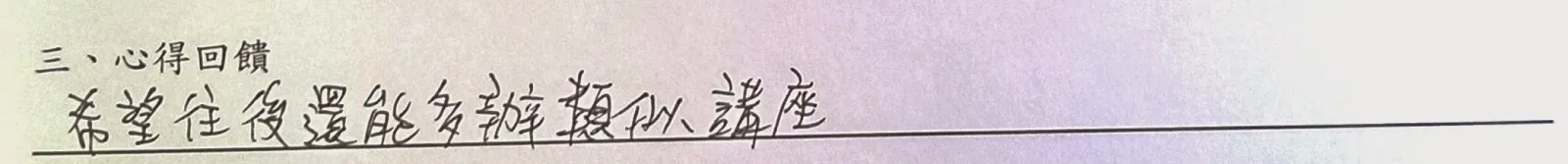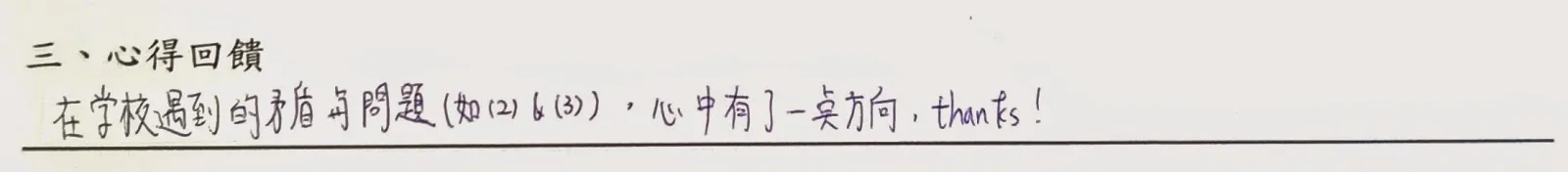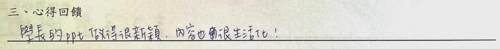 以下是手寫回饋部份,一些想法與疑問將陸續回答,至於往後希望多開類似講座部份,請大家努力向系學會爭取!