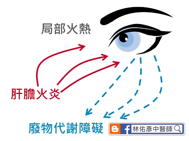 同樣的,嚴重的眼部發炎性疾病也可以如此考量,局部的發炎、瘢痕都是氣血受到阻滯。除了處理局部的火熱之外,循環問題、路徑問題、臟腑偏勢以及患者自身的習慣都需要一起調整。且治療時不一定需要用針灸,單純藥物治療內服、外薰都可以治療。
