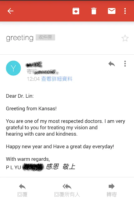 Mr. Yu is 73 years old business man, who moved to Kansas 10 years ago. He came for help with his poor vision and hearing about 5 years when he came back to Taiwan. He has hypertension and diabetes with regular oral medication.