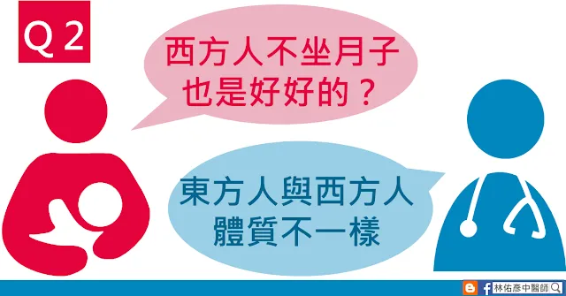 其實,東方人與西方人生活習慣不同、飲食、氣候、社會環境,甚至是體質也不一樣,所以傳統中國社會流傳下來的坐月子不一定適用於西方人。就連中醫的典籍《黃帝內經》之中也寫了,每個不同地區的人們,受到環境的影響,體質的狀況都是不一樣的。