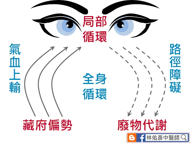 除了臟腑的問題,還要考慮到經絡的通暢與否,體內的代謝廢物有沒有正常排出,內臟產生的營養有沒有輸送到眼睛。路徑通暢,氣血精微運送無阻礙,局部的代謝廢物也容易排出;路徑受阻,則許多症狀就會產生,不利於自行修復。