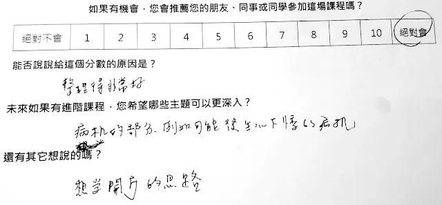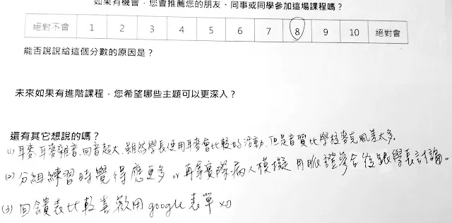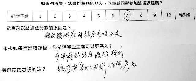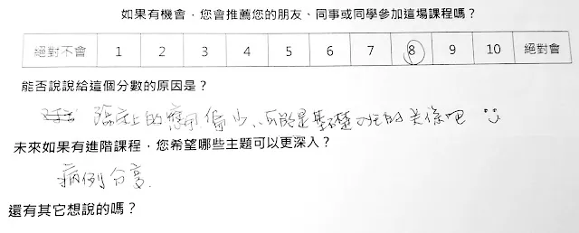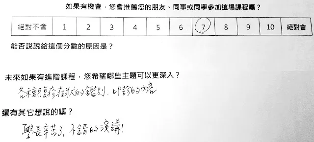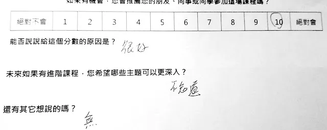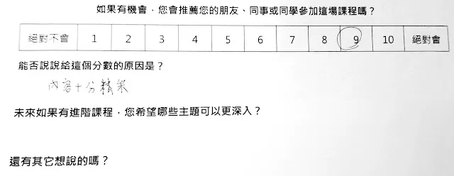 以上,之後如果有公開班,會一併調整再次開放報名哦!謝謝大家提供的寶貴建議,讓我能不斷修改與調整,提供更優質的教學與演講,謝謝各位!