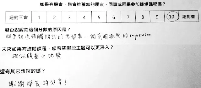 2016/06/12(日) 中醫腹診 滿意度分析 與 手寫回饋