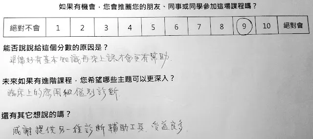 不過,今天在車上與柯主任討論了一下,腹診的課程還是比較適合給實習醫師以上來聽,有臨床的經驗會更有感,也會有更多的回饋才是!另外,這一場因為只有我一個人前去花蓮,沒有找人拍照,所以就沒有照片給大家參考了~~