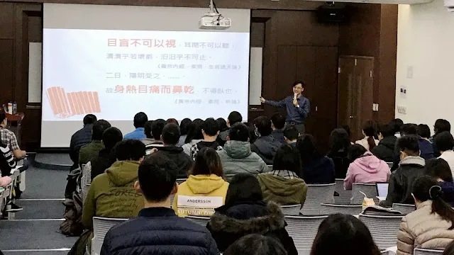 中醫眼科學在整個中醫體系的發展屬於較新興的範疇,其實中醫藥發展這麼久,是一直到北宋才開始成立眼科的獨立專科,且直到明清才比較有系統性的專書出版。例如學長推薦的《審視瑤函》或以往中醫特考會考的《醫宗金鑑.眼科心法》,然而後期由於現代醫學傳入,西醫眼科引進許多檢測儀器和開刀技術,相關發展可謂一日千里,中醫藥在眼科這個領域越來越冷門,更加突顯本次演講的珍貴。