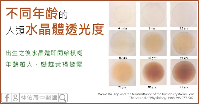 正常來說,人人都會白內障,不一定是需要治療的。人類一出生開始,接受到光線的刺激,水晶體變開始進行生長與凋亡,只要 40 歲以上,人類的水晶體的彈性就只剩下年輕時的 1/5。一般來說到了 55 歲左右,水晶體也會慢慢黃褐色,這是正常的老化性白內障。