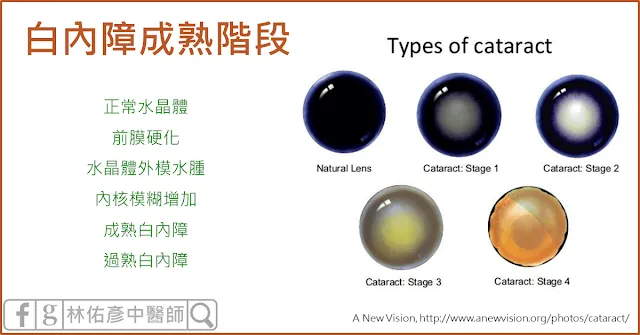 病理性的白內障通常是單一隻眼睛或雙眼,不規則的變模糊,先從水晶體前囊水腫、核性模糊開始,這時候的白內障是有機會改善的。但到了中期,水腫消退,水晶體核內蛋白質排列改變,使得透光效果變差,這時候比較難調整回來。如果到了成熟期、過熟期,前囊與核貼合,這時候蛋白質變性,也是比較沒辦法改變的時期,只能用手術方式置換。